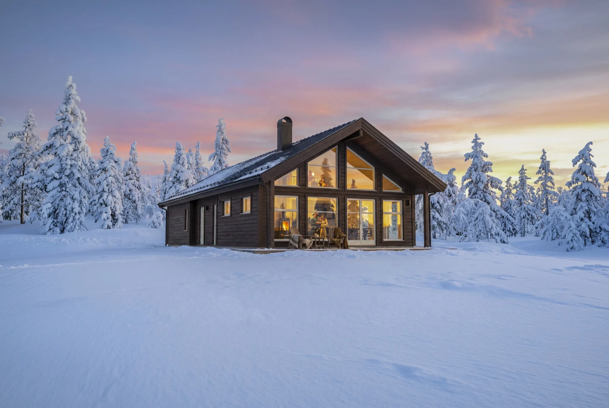 Frøya 105 har med sine 3 soverom i 1 etasje, i tillegg til et stort lukket hemsrom, sengeplasser nok til å kunne invitere til større sammenkomster på hytta.