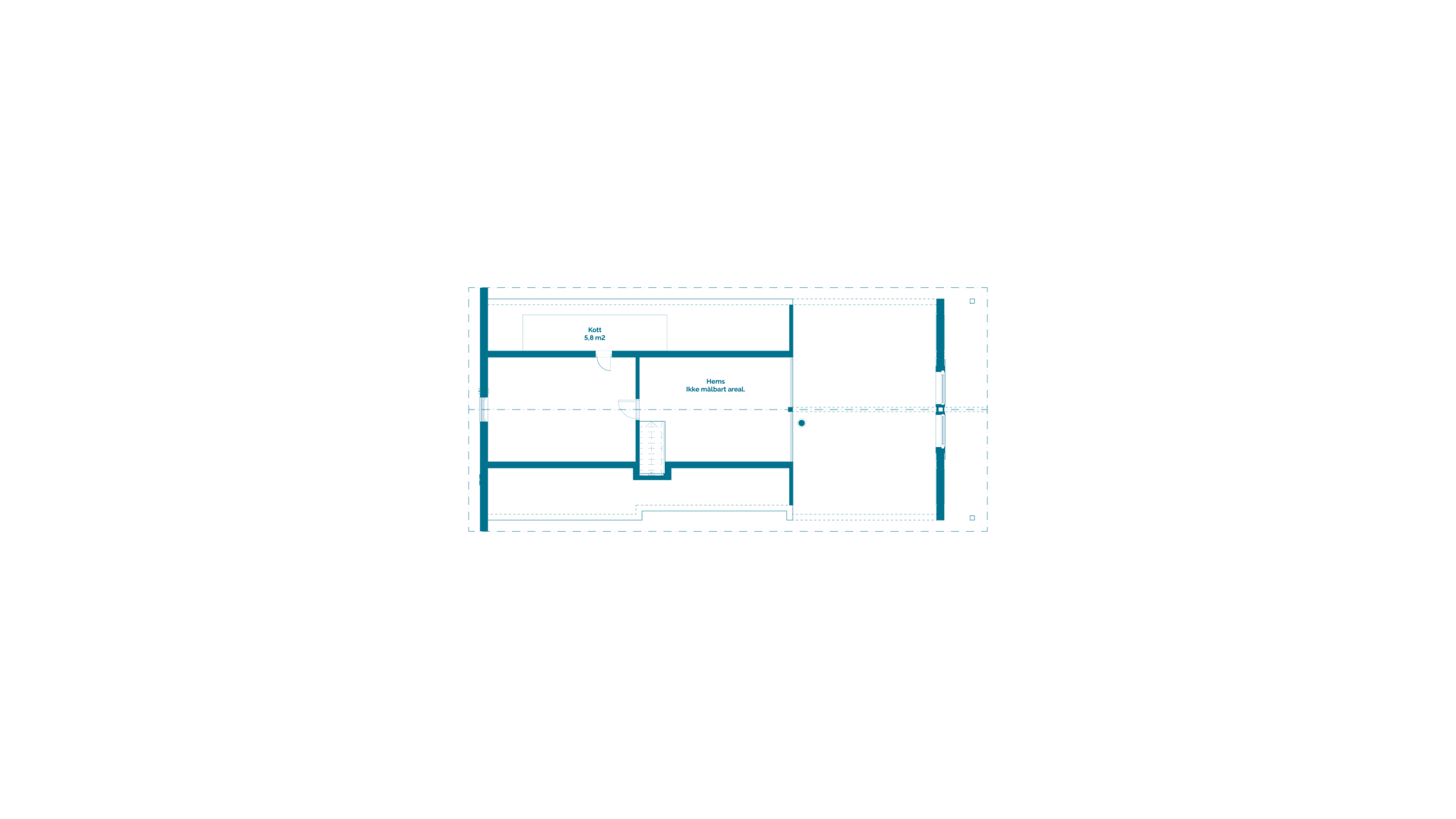Hems / 2. etasjeHemsstue, rom og kott. *Stue, rom og kott på hems har lavere takhøyde, og inngår ikke i BRA.