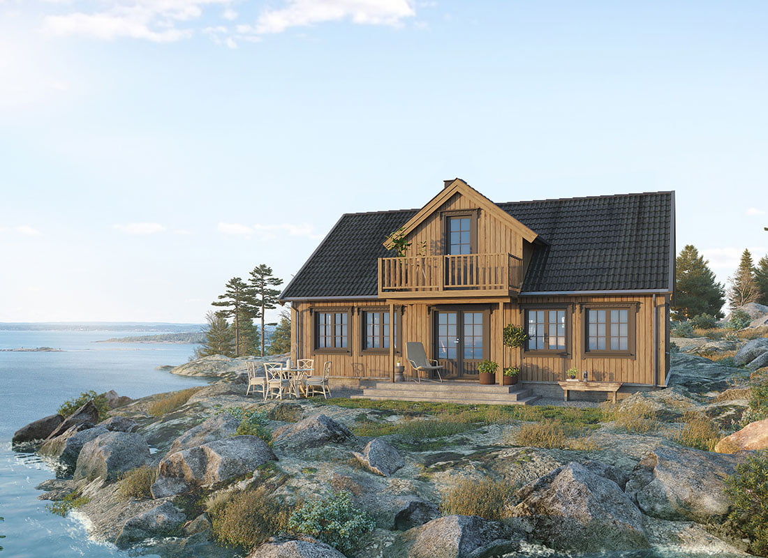 Homborøy er en tradisjonell sørlandshytte kledd i mørke farger for å passe inn i det flotte terrenget på Sørlandsleia. I første etasje har man stor stue- og kjøkkenløsning, samt et soverom, bad og vaskrom- bod. I tillegg har man en praktisk utebod med egen inngang. Hytta har en effektiv hemsløsning med god takhøyde der man i tillegg til tre romslige soverom har fått plass til toalett.