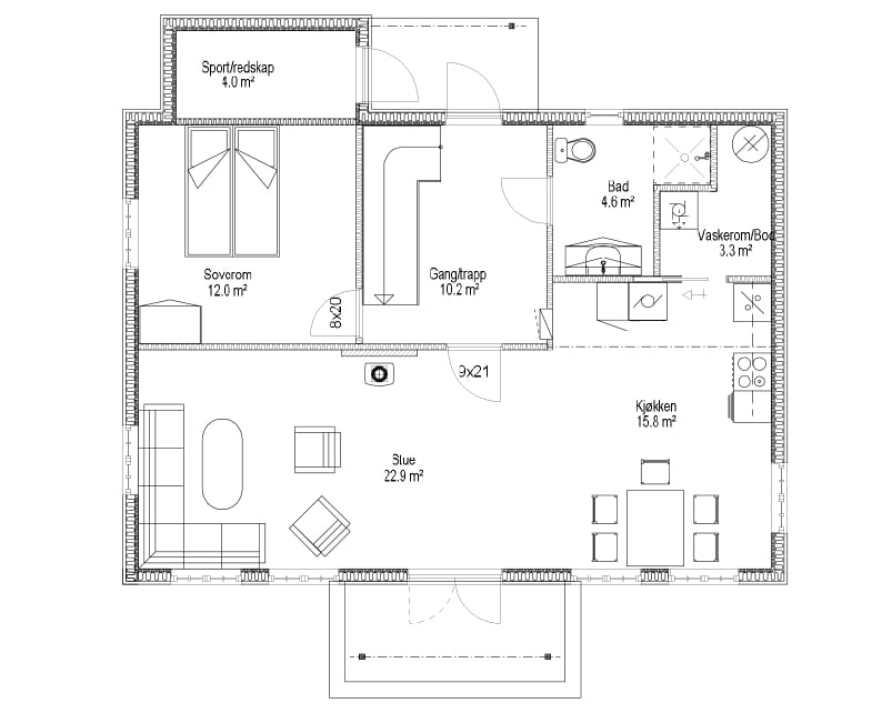 Med godt utnyttet hemsetasje blir hyttas fotavtrykk mindre. Dette gjør at man i tillegg til hytta har mulighet til å for eksempel bygge et anneks eller utebod i fremtiden.