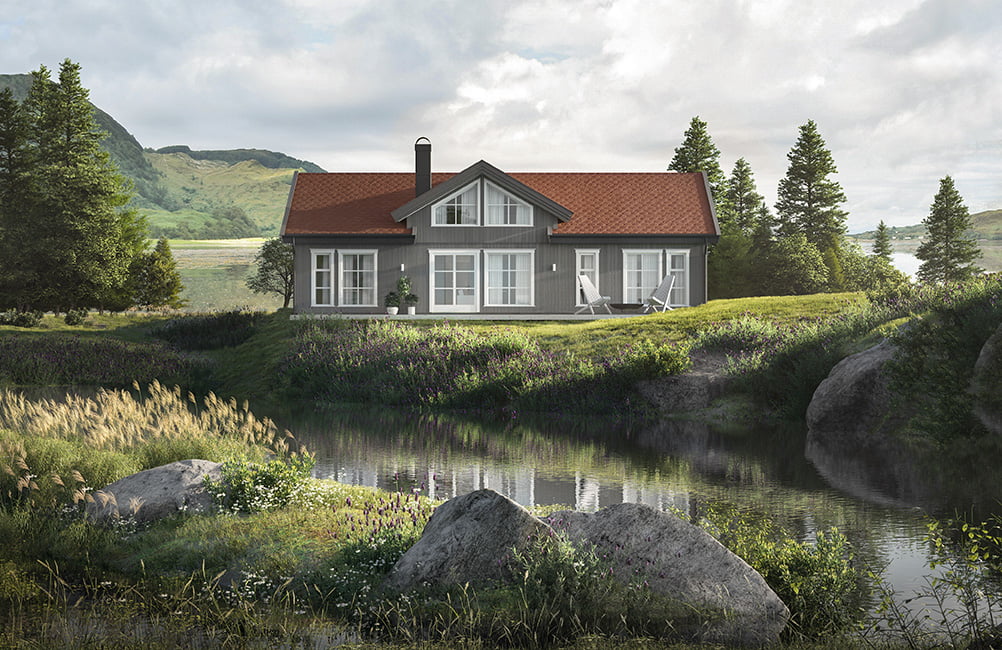 Se hva denne hyttemodellen vil koste på de ulike tomtene