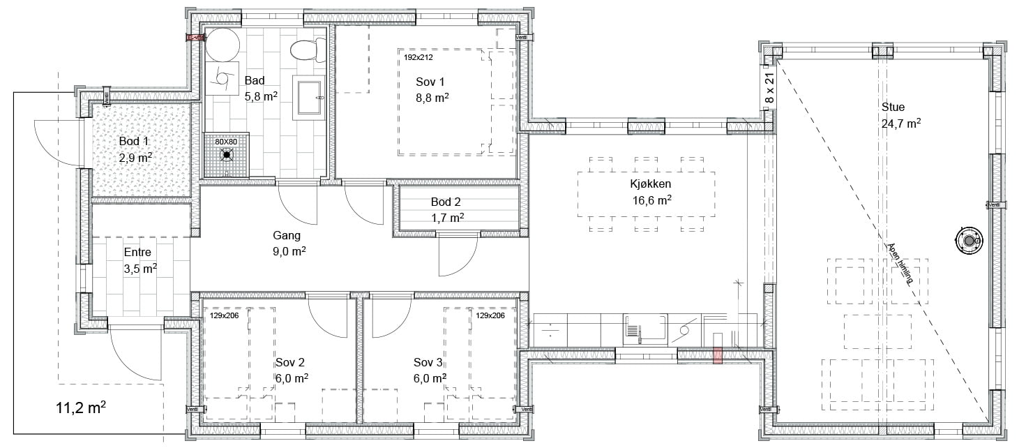Åpningen mellom stue og kjøkken binder sonene sammen og er med på å skape god harmoni. Videre er det tre gode soverom og et fint bad. Bod og utvendig sportsbod gjør det enkelt å holde orden på utstyr.
