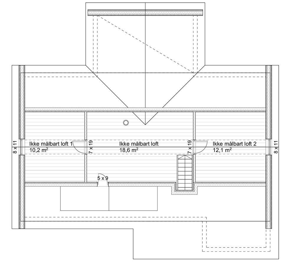 Hems / 2. etasjeHemsstue og 2 soverom *Soverom og stue på hems har lavere takhøyde, og inngår ikke i BRA.