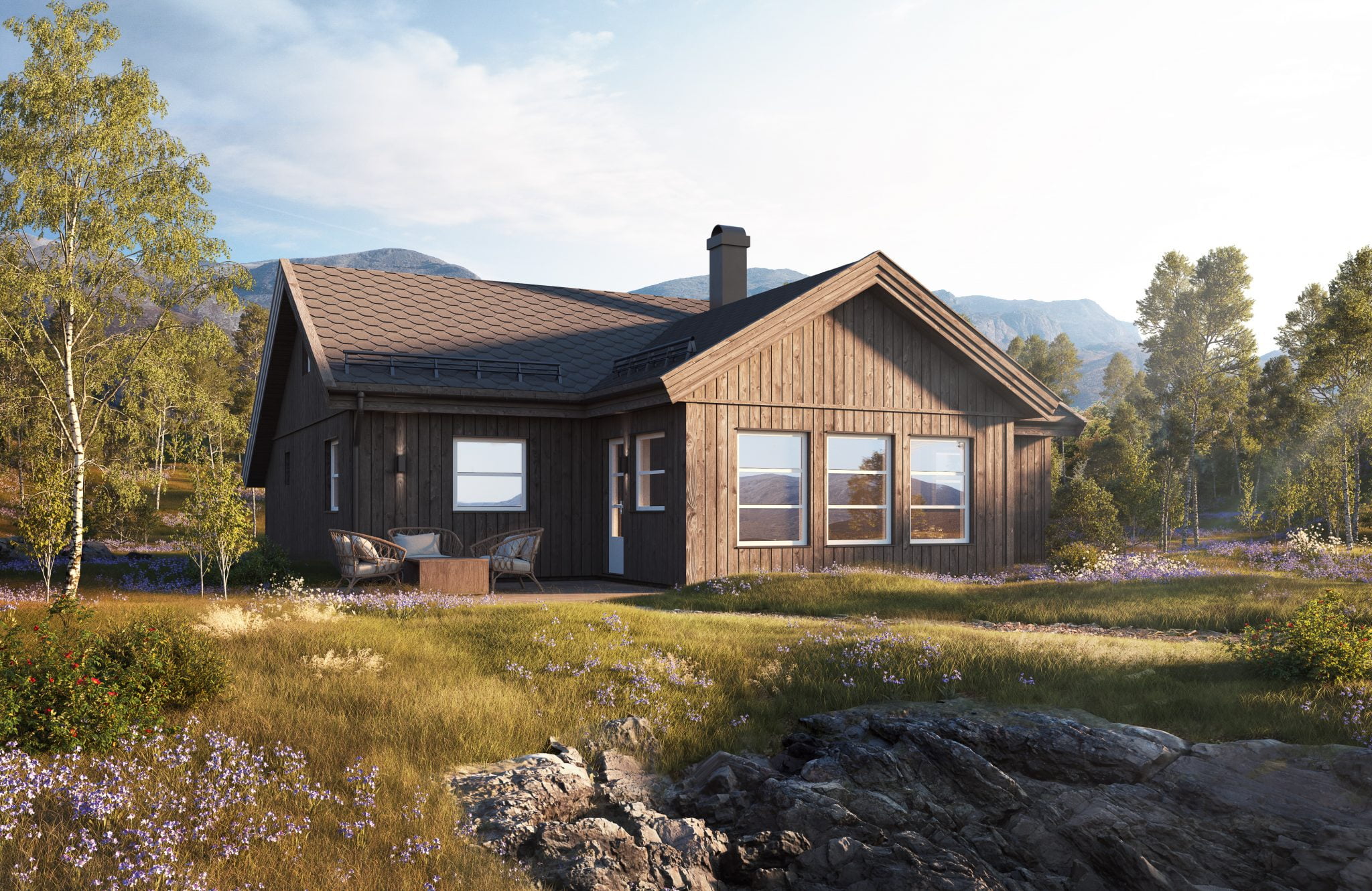 Se hva denne hyttemodellen vil koste på de ulike tomtene