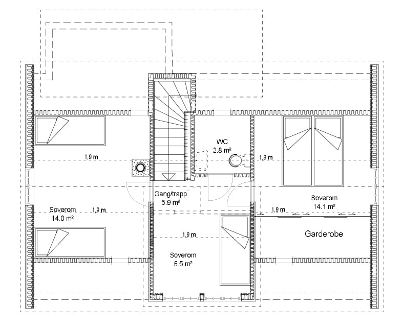 Med godt utnyttet hemsetasje blir hyttas fotavtrykk mindre. Dette gjør at man i tillegg til hytta