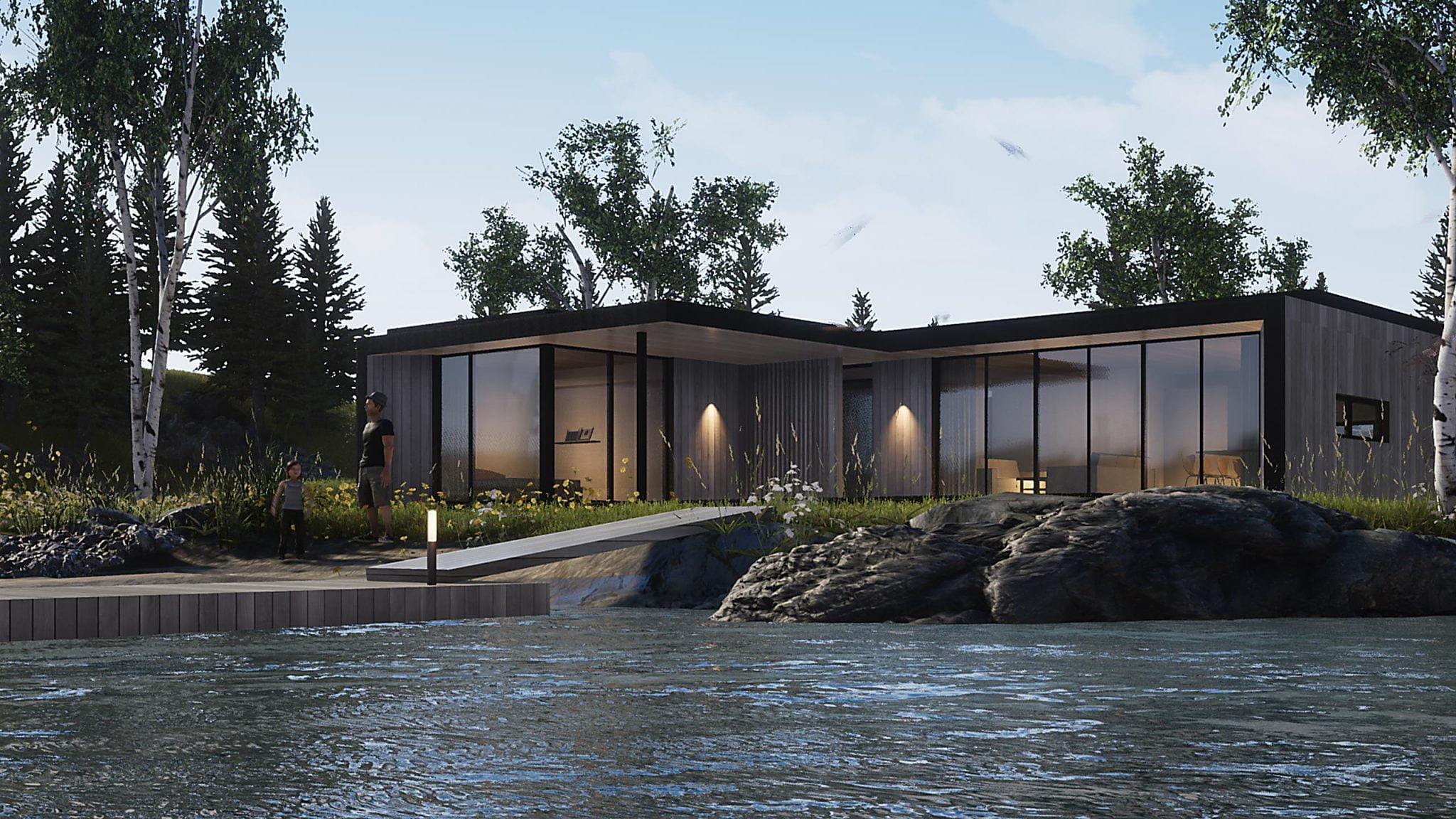 Den ultimate sommerhytta som er designet for å skape god atmosfære både inne og ute. Store glassflater og skyvedører ut mot terrassen skaper et hyggelig uterom hvor man kan nyte lange herlige sommerkvelder.